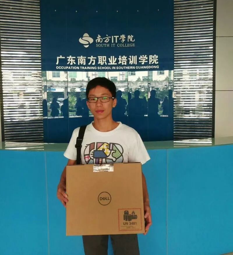 这位刚报读的同学捧着学校送的笔记本电脑,即将开启他的IT精英梦。